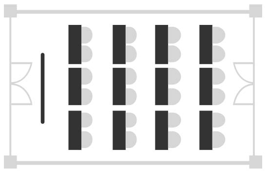 The disposition in classroom is interesting for the welcoming up to 135 people when gathering the 3 spaces into one. It offers a good possibilty of communication between the speaker and the public.